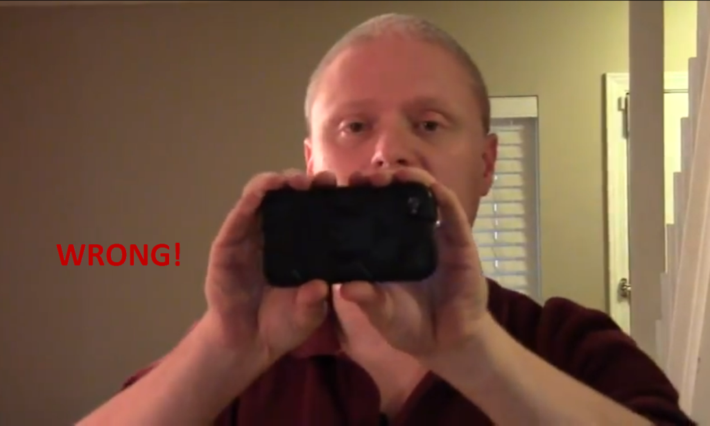 1. Finger Curl – curl your middle fingers around the front lower side of your camera phone – this will add stability and will help subconsciously you to keep your armed tucked in
