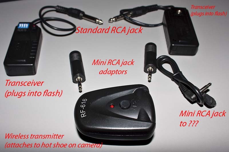 Finally, it looks as though in order to get these triggers to work with a Canon 550EX, I would need an adaptor cable of sorts that would change an RCA mini to a female version of that three-prong set on the 550. Any ideas from those out in the blogosphere?