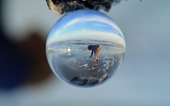How was Josh’s images made? Too perfectly round to be a water drop? Done in Photoshop or in camera? I’m guessing a glass sphere sitting on a rock on the beach, shooting the kid, then inverted in Photoshop. Am I close?